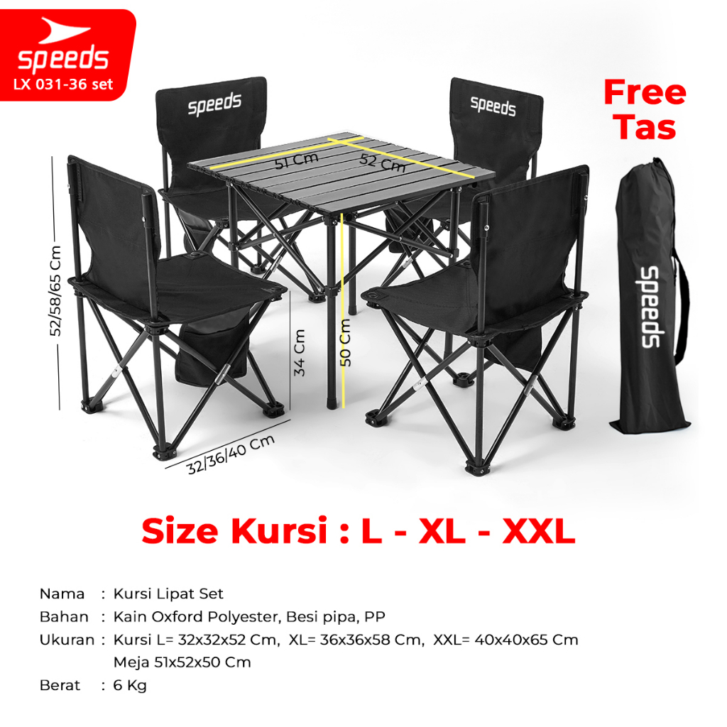 Speed Kursi Lipat Outdoor Set/camping chairs, SPEEDS Meja Kurs Lipat Set Free Meja Lipat Kursi Lipat Outdoor Indoor, termasuk Tas Folding Table Chair Portable Meja Camping Piknik 031-36